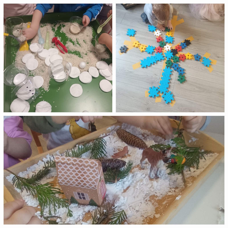 U starijoj jasličkoj skupini provodili smo projekt Zimska čarolija, koji je započeo nakon prvog snijega i spontanog interesa djece za zimske pojave. Kroz raznovrsne aktivnosti djeca su istraživala teme snijega, snjegovića i pahuljica uz bogat izbor materijala i poticaja.